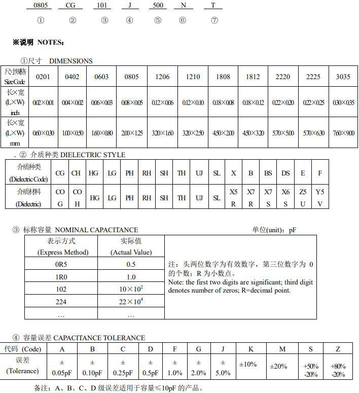 風(fēng)華貼片電容型號規(guī)格表示圖如下