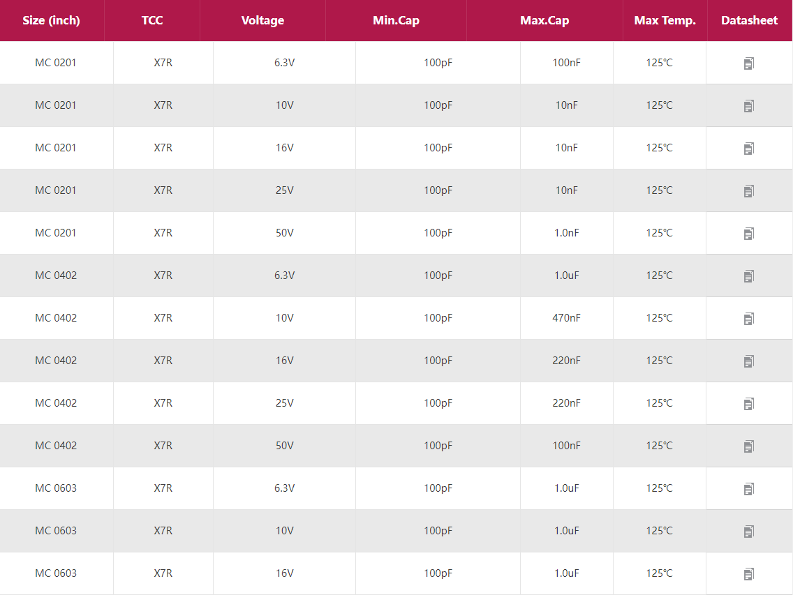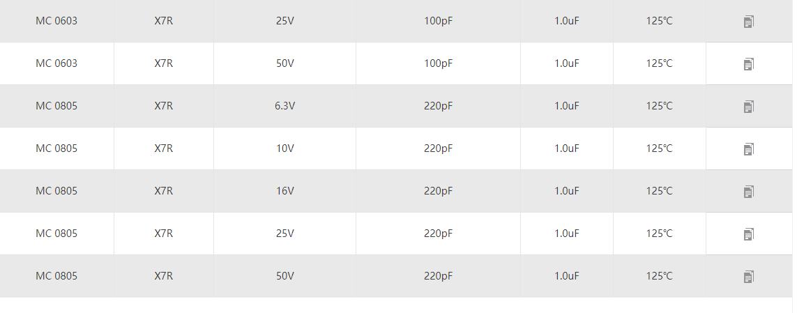 MC:X7R通用電容 產(chǎn)品型號(hào):0201 0402 0603 0805
